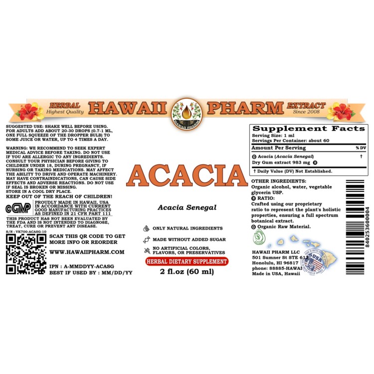 - Acacia liquid extract contains ONLY natural ingredients! We strictly use Only Certified Organic or ethically sourced wild harvested raw material!