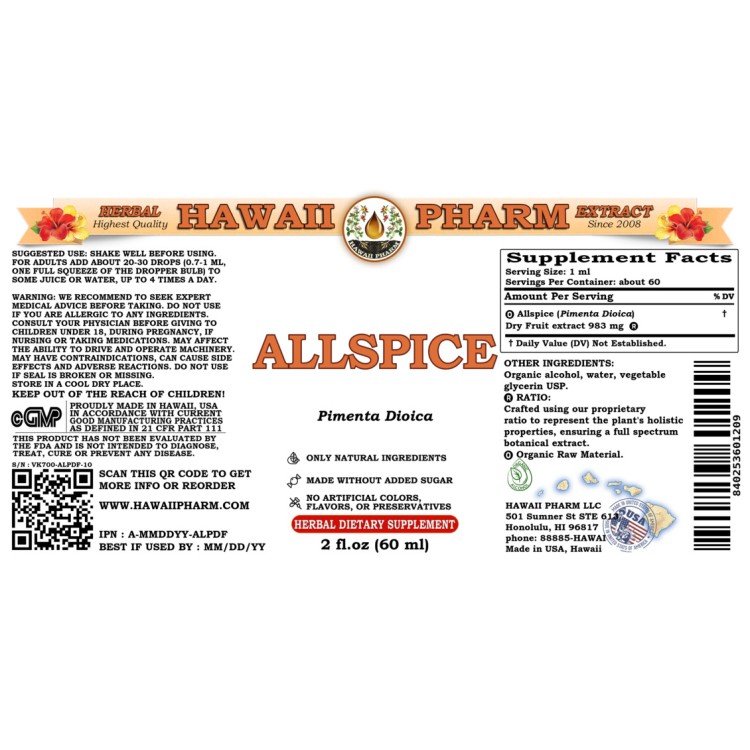 - High Quality Allspice liquid extract- we use classic conventional methods of extraction! We meticulously produce our extracts according to precise standards where each herb is extracted according to the distinct characteristic of each plant!