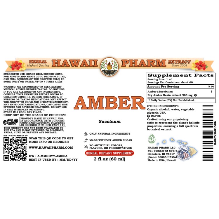 We stand behind the quality of our Amber (Succinum) Dry Amber Resin Tincture with our satisfaction guarantee. Each bottle contains the pure essence of organic botanical ingredients, expertly extracted without preservatives or synthetic additives.