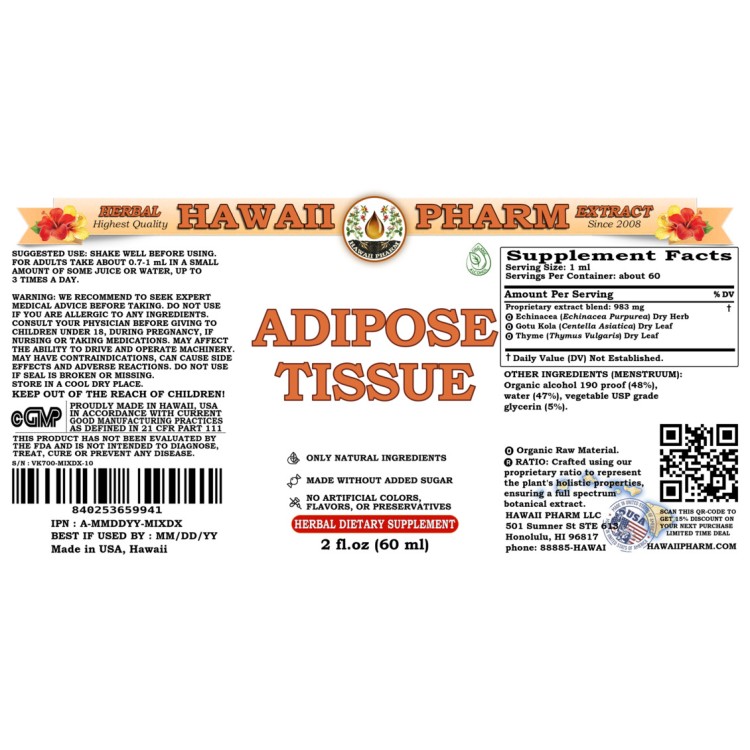 • Adipose Tissue Support liquid extract contains ONLY natural ingredients!