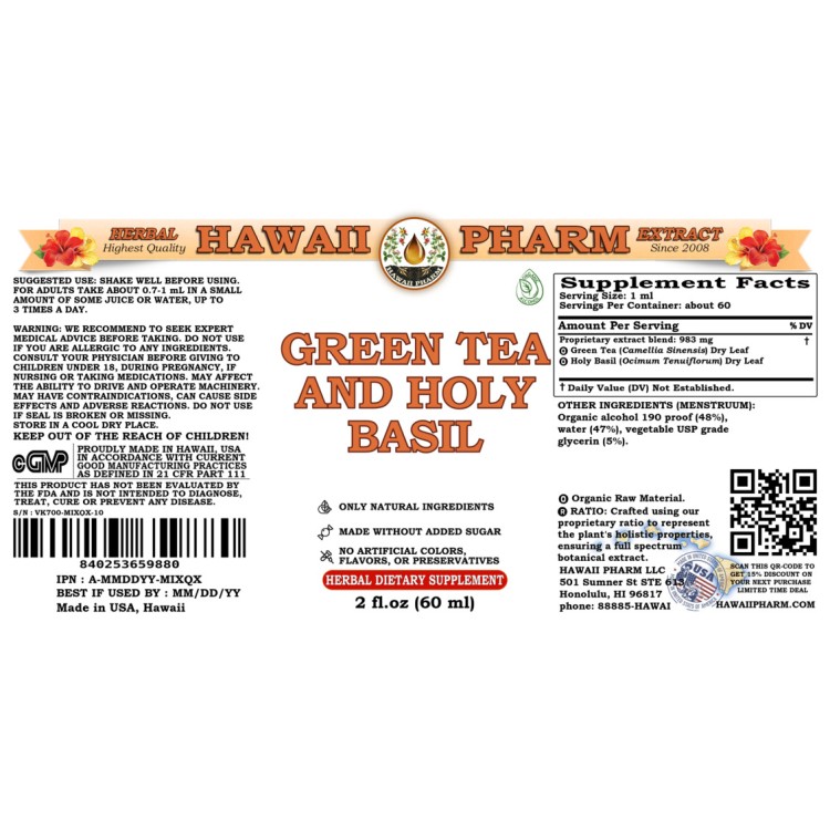 • High Quality Green Tea and Holy Basil liquid extract- we use classic conventional methods of extraction! We meticulously produce our extracts according to precise standards where each herb is extracted according to the distinct characteristic of each plant!