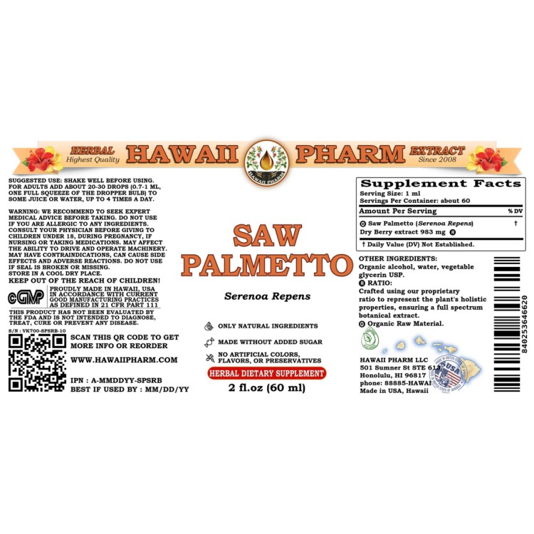 - Saw Palmetto liquid extract contains ONLY natural ingredients! We strictly use Only Certified Organic or ethically sourced wild harvested raw material!