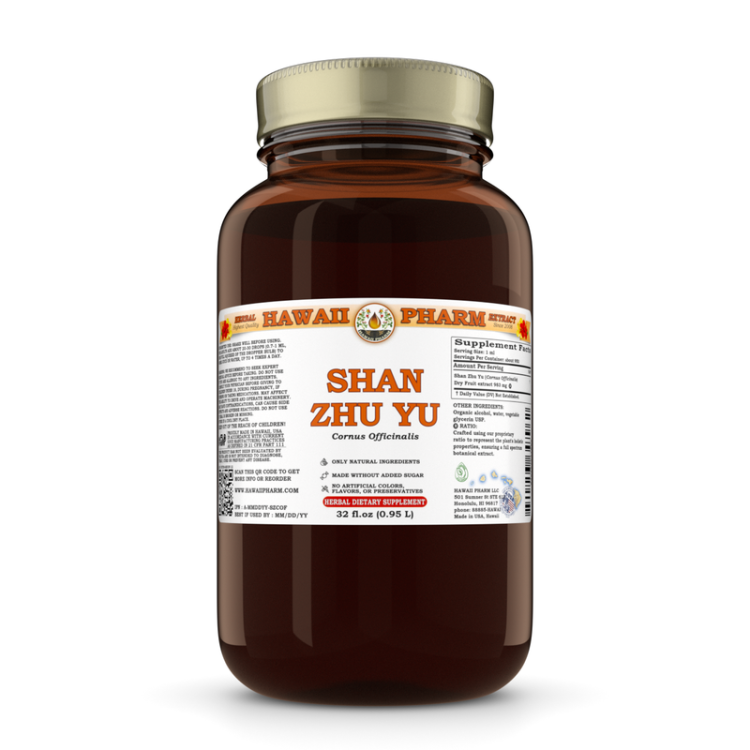 Main ingredient: Wildcrafted Shan Zhu Yu (Cornus Officinalis) Dry Fruit. Origin: China. Menstruum: Alcohol, vegetable glycerin, crystal clear water. Contains NO: GMO, gluten, artificial colors.