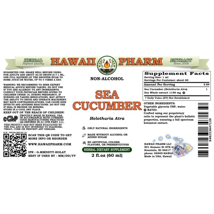 - Sea Cucumber Glycerite contains ONLY natural ingredients! Alcohol Free! Gluten Free! Non-GMO!