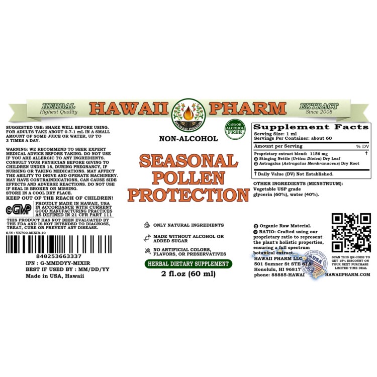 • Seasonal Pollen Protection NON-Alcohol liquid extract contains ONLY natural ingredients!