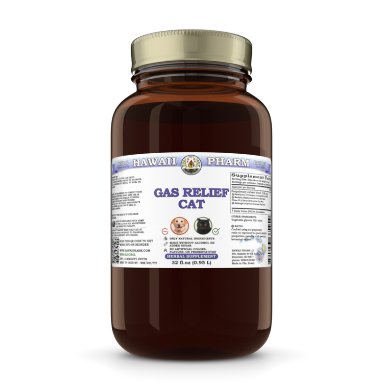 • Gas Relief Cat Pet Herbal Supplement is 100% drug-free and non-addictive natural Glycerin based liquid formula proudly manufactured in the USA, Hawaii to ensure highest quality of the product!