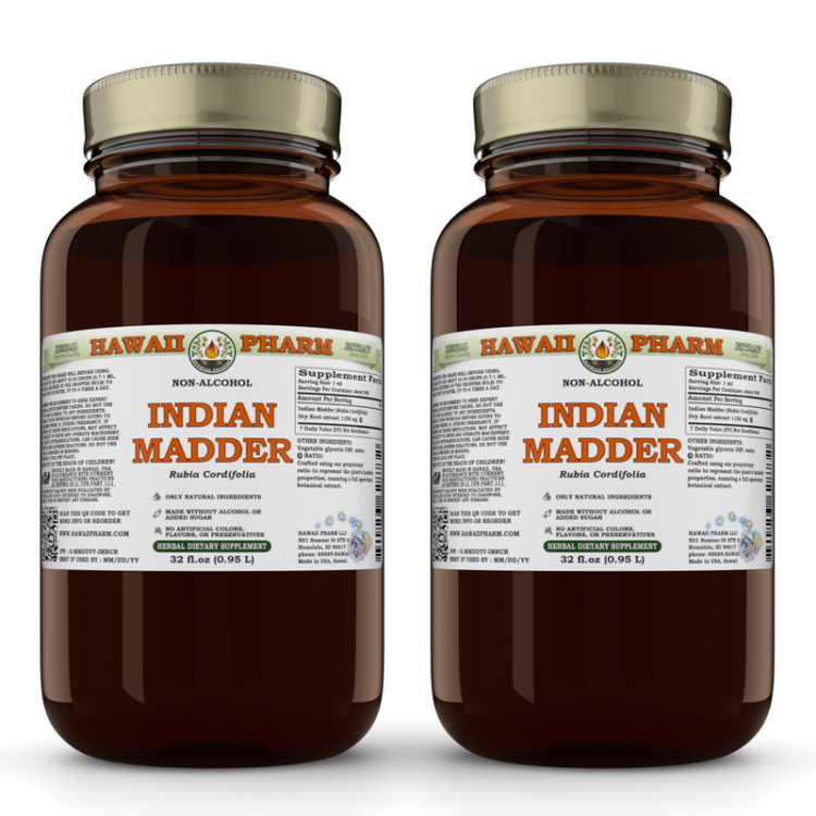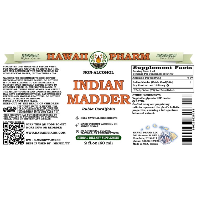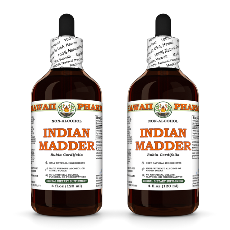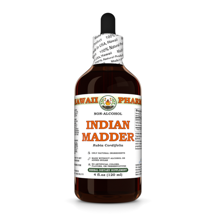 - We made this Indian Madder liquid extract using ONLY natural ingredients! This extract does not contain Alcohol, GMO, gluten, artificial colors, heavy metals, preservatives, pesticides or fertilizers!