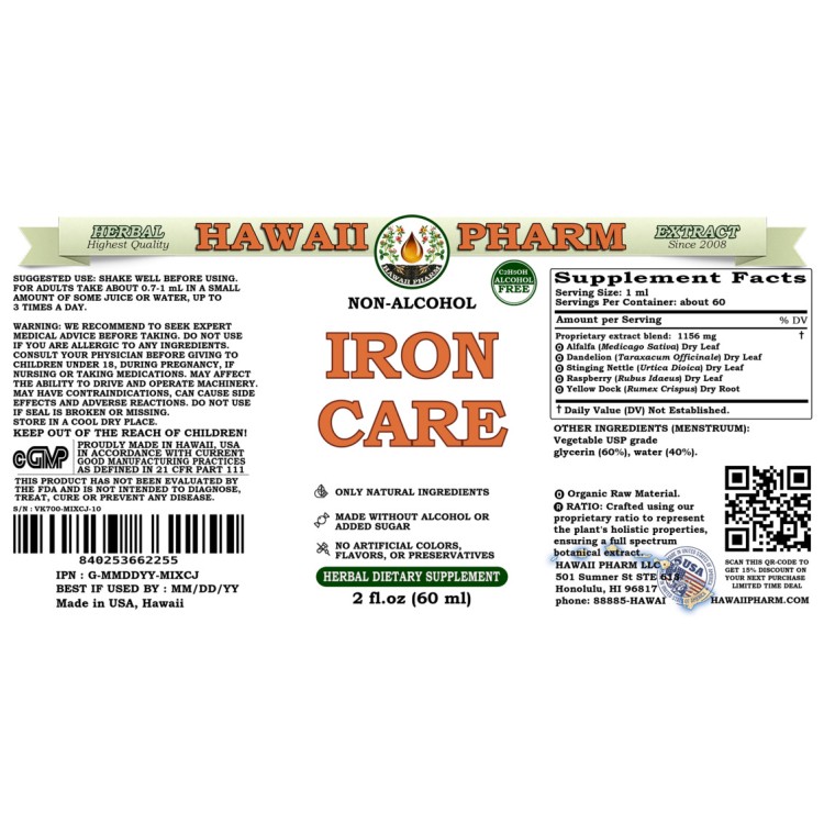 - Iron Care NON-Alcohol liquid extract contains ONLY natural ingredients!