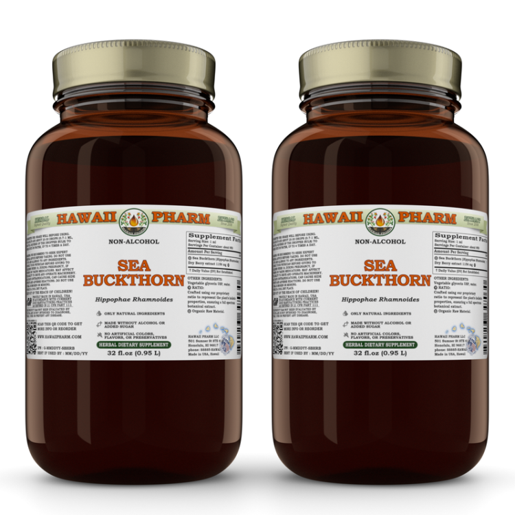 Main ingredient: Certified Organic Sea Buckthorn (Hippophae Rhamnoides) Dry Berry. Origin: China. Menstruum: Alcohol, vegetable glycerin, crystal clear water. Contains NO: GMO, gluten, artificial colors.