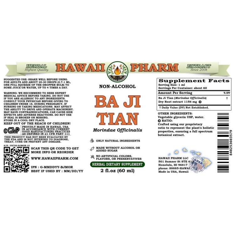 • Expertly extracted Ba Ji Tian ALCOHOL-FREE liquid extract!
