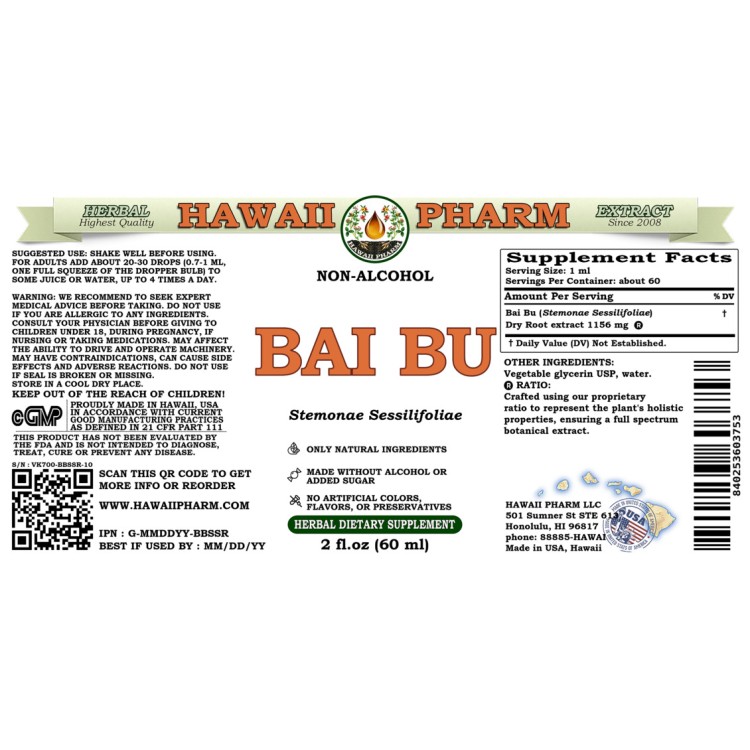 - Expertly extracted Bai Bu ALCOHOL-FREE liquid extract!