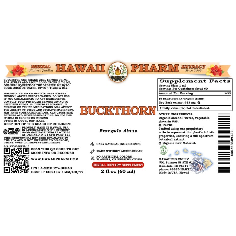 - Buckthorn liquid extract contains ONLY natural ingredients!