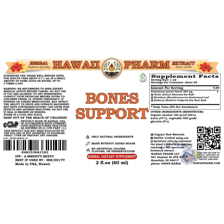 - High Quality Bones Support liquid extract- we use classic conventional methods of extraction! We meticulously produce our extracts according to precise standards where each herb is extracted according to the distinct characteristic of each plant!