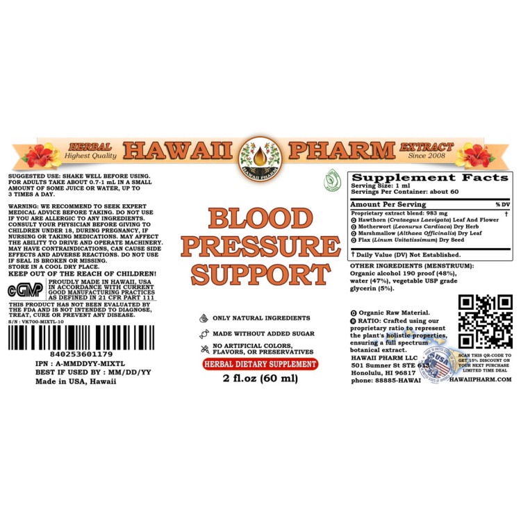 Blood Pressure Support Liquid Extract, Hawthorn Dried Leaf and Flower, Motherwort Dried Herb, Marshmallow Dried Herb, Flax Seed
