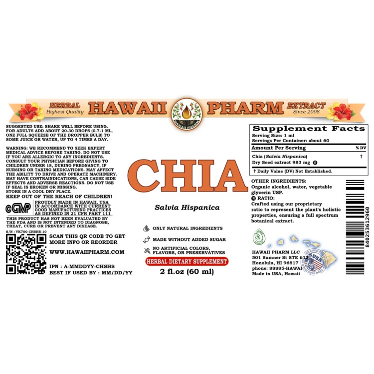 label of Chia (<i>Salvia Hispanica</i>) Dry Seed Tincture