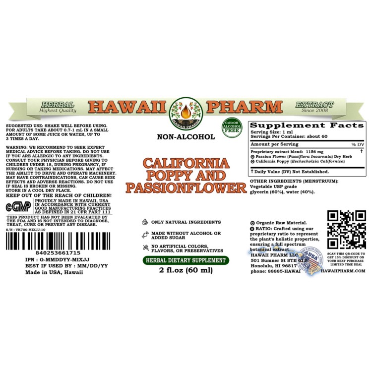 - High Quality California poppy and Passionflower NON-Alcohol liquid extract- crude extract of first extraction! We meticulously produce our extracts according to precise standards where each herb is extracted according to the distinct characteristic of each plant!