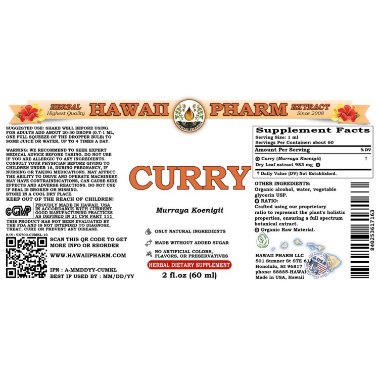 • Not filtered Curry liquid extract - we use classic conventional methods of extraction! We meticulously produce our extracts according to precise standards where each herb is extracted according to the distinct characteristic of each plant!