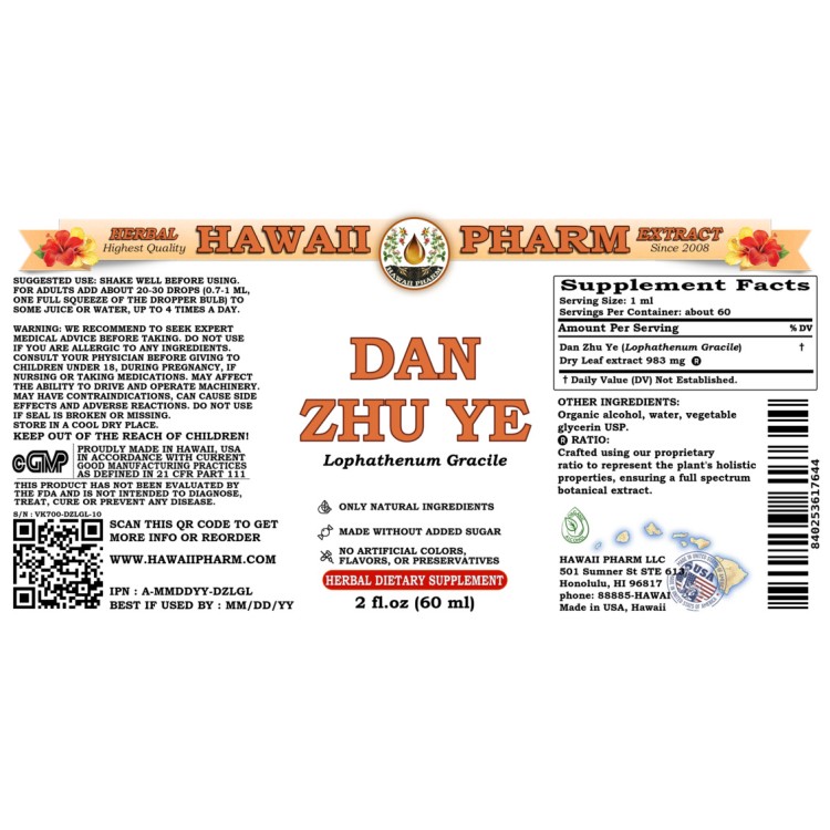 Availability : In StockDan Zhu Ye (Lophathenum Gracile) Tincture, Dried Leaves Liquid Extract