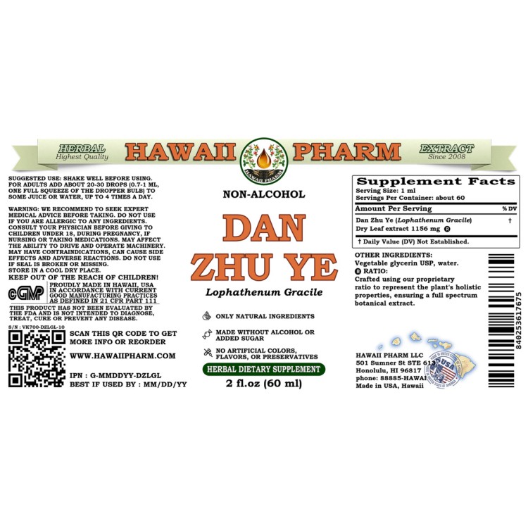 Availability : In StockDan Zhu Ye (Lophathenum Gracile) Glycerite, Dried Leaves Alcohol-Free Liquid Extract, Glycerite Herbal Supplement