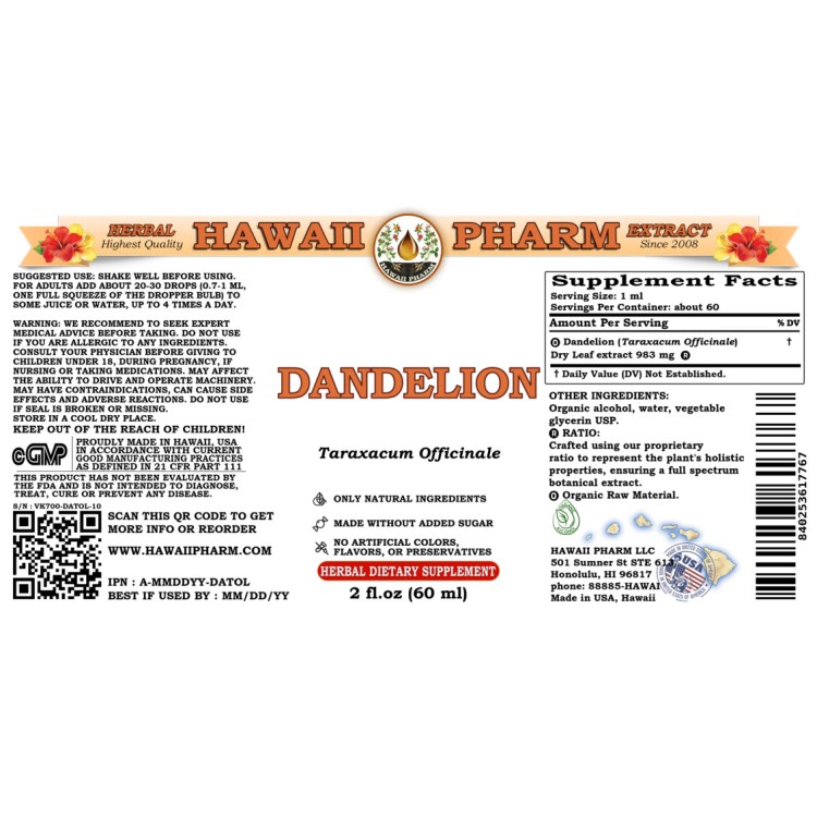- Dandelion leaf liquid extract contains ONLY natural ingredients! We strictly use Only Certified Organic or ethically sourced wild harvested raw material!