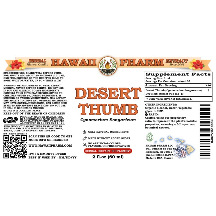 - Expertly extracted under strict quality standards and procedures from Desert Thumb Dried Herb. We meticulously produce our extracts according to precise standards where each herb is extracted according to the distinct characteristic of each plant!