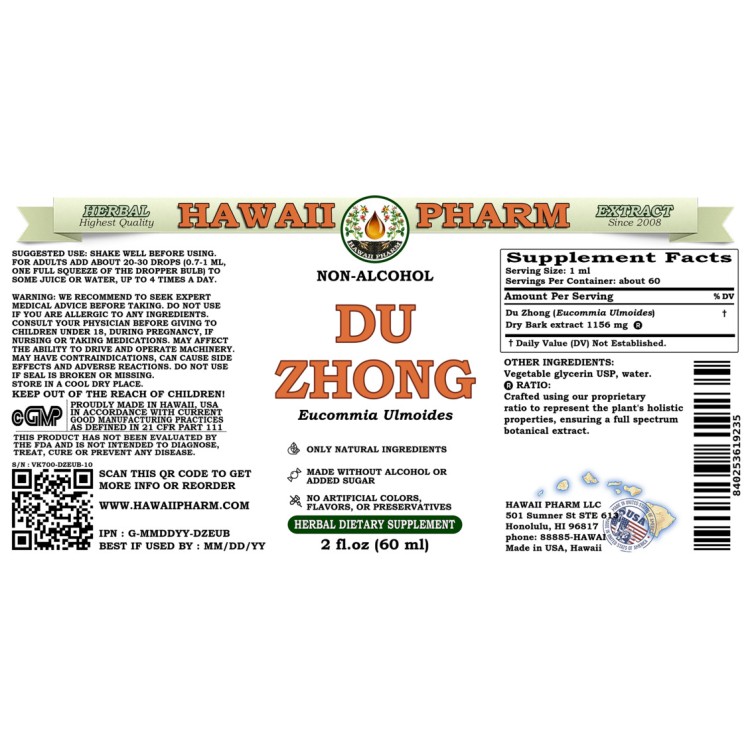 - Expertly extracted Du Zhong ALCOHOL-FREE liquid extract!