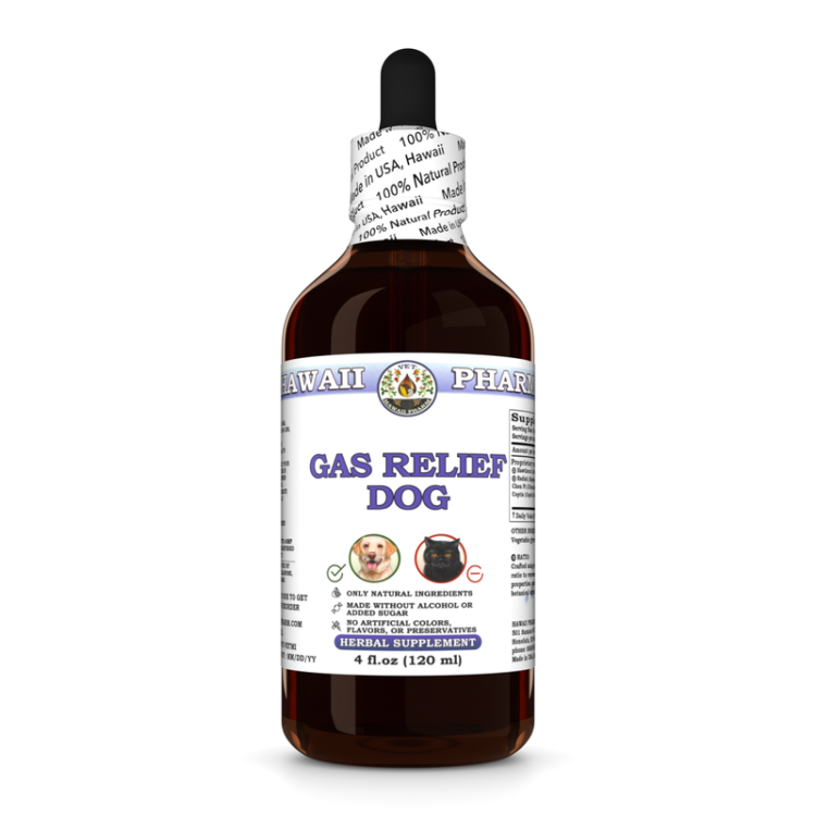 • Gas Relief Dog Pet Herbal Supplement is 100% drug-free and non-addictive natural Glycerin based liquid formula proudly manufactured in the USA, Hawaii to ensure highest quality of the product!