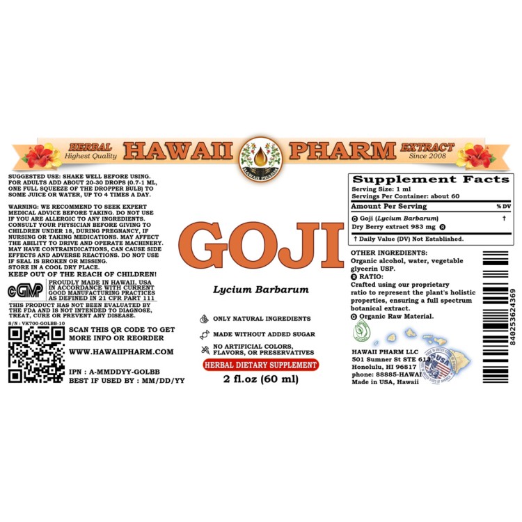 - High QualityGoji liquid extract - we use classic conventional methods of extraction! We meticulously produce our extracts according to precise standards where each herb is extracted according to the distinct characteristic of each plant!