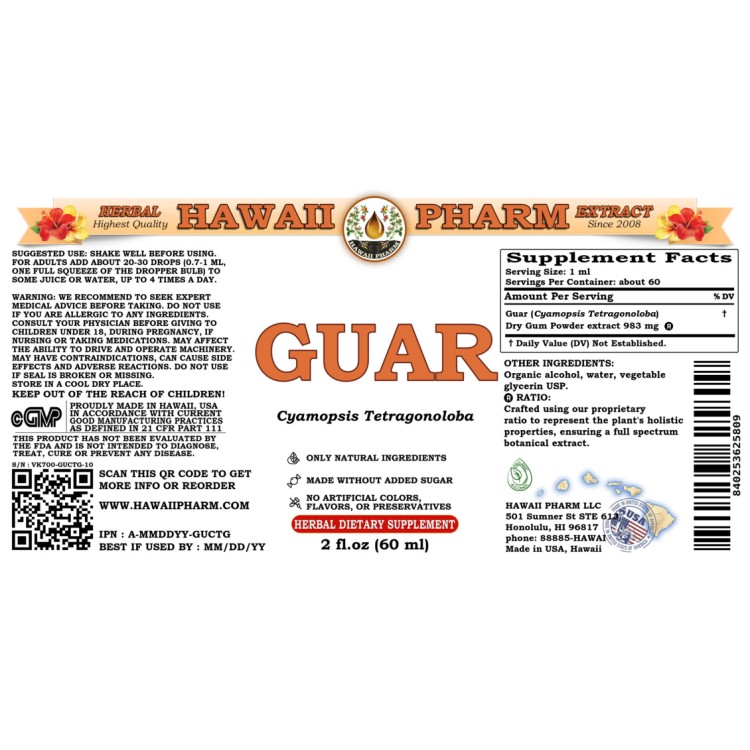 Availability : In StockGuar (Cyamopsis Tetragonoloba) Tincture, Certified Organic Dried Gum Powder Liquid Extract