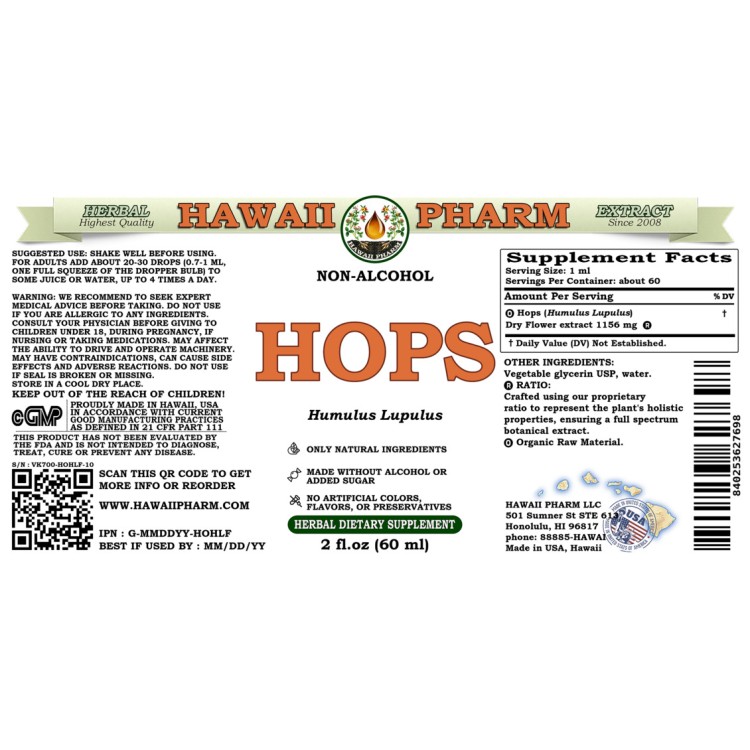 Availability : In StockHops Alcohol-FREE Liquid Extract, Organic Hops (Humulus Lupulus) Dried Flower Glycerite