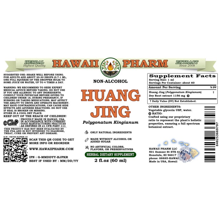 • Expertly extracted Huang Jing ALCOHOL-FREE liquid extract!