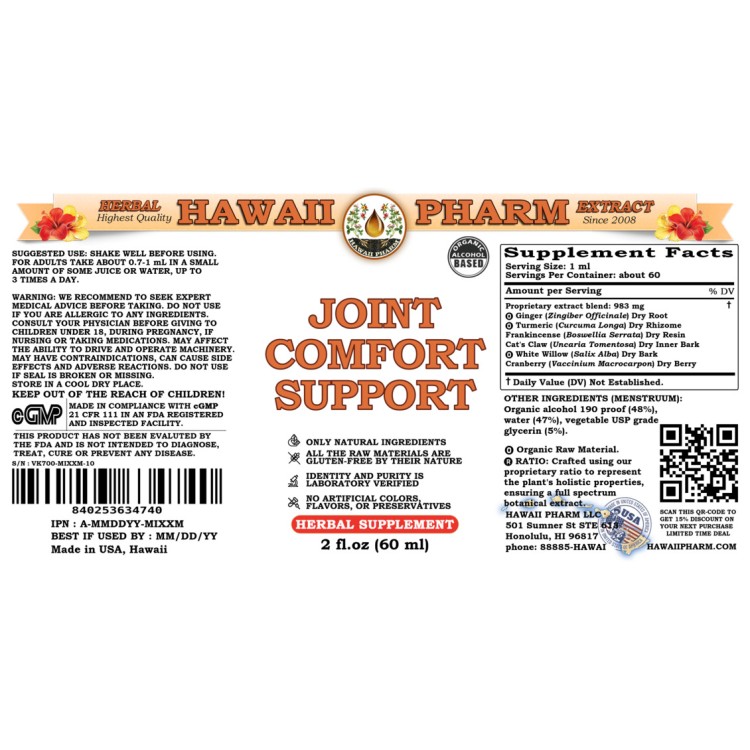 - High Quality Joint Comfort Support liquid extract. We use classic conventional methods of extraction! We meticulously produce our extracts according to precise standards where each herb is extracted according to the distinct characteristic of each plant.