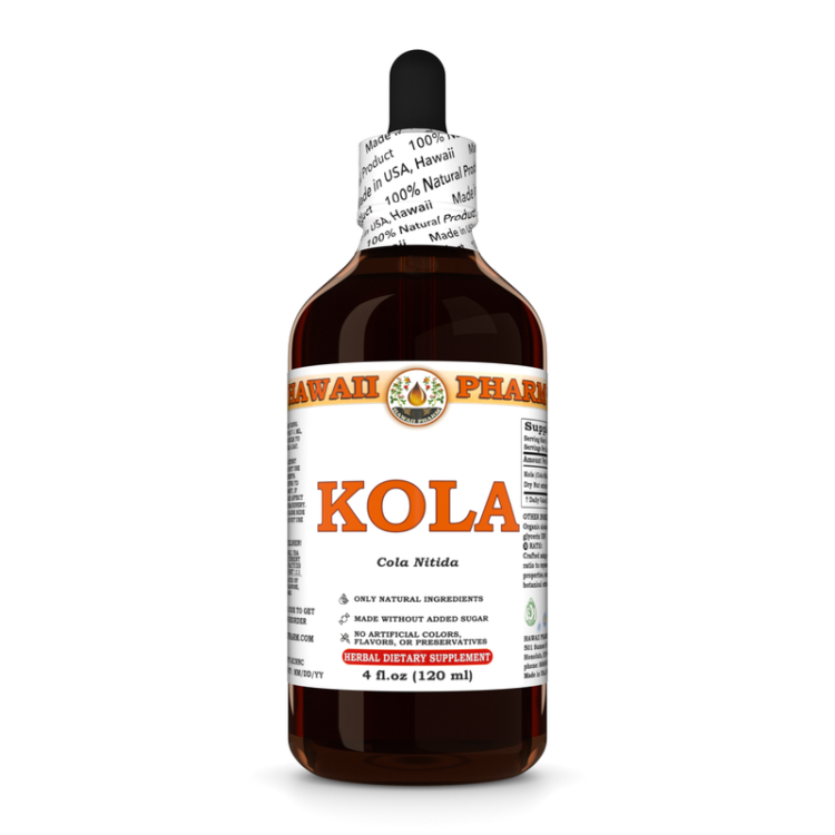 Main ingredient: Wildcrafted Kola (Cola Nitida) Dry Whole Nut. Origin: Brazil. Menstruum: Alcohol, vegetable glycerin, crystal clear water. Contains NO: GMO, gluten, artificial colors.