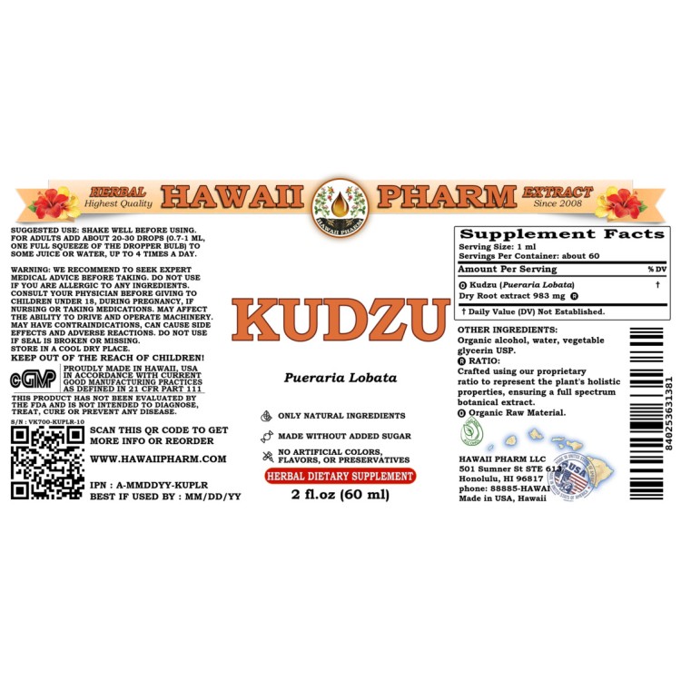 - Kudzu liquid extract contains ONLY natural ingredients! We strictly use Only Certified Organic or ethically sourced wild harvested raw material!