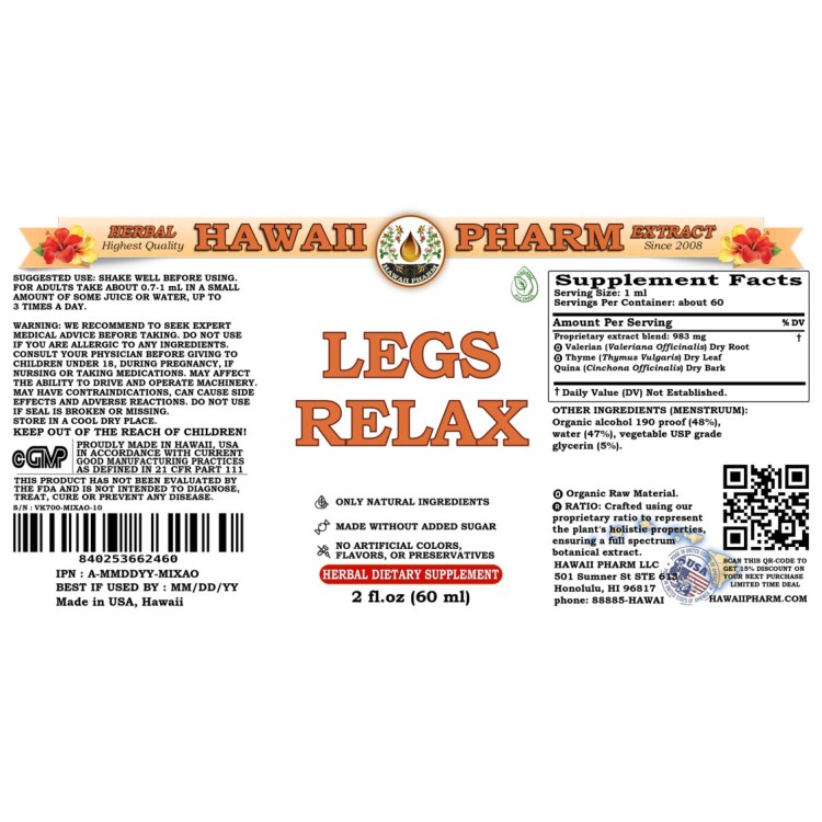 - High Quality Legs Relax Supplement - we use classic conventional methods of extraction! We meticulously produce our extracts according to precise standards where each herb is extracted according to the distinct characteristic of each plant!