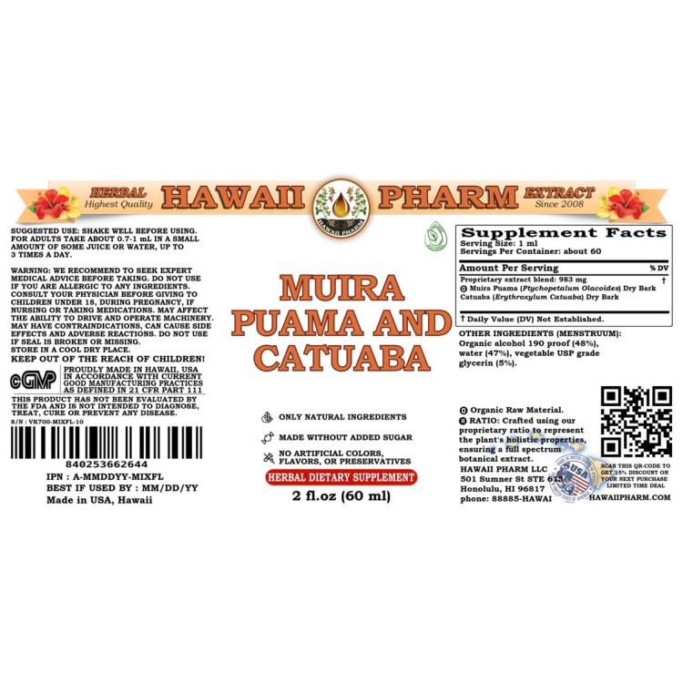 • Muira Puama and Catuaba liquid extract contains ONLY natural ingredients!