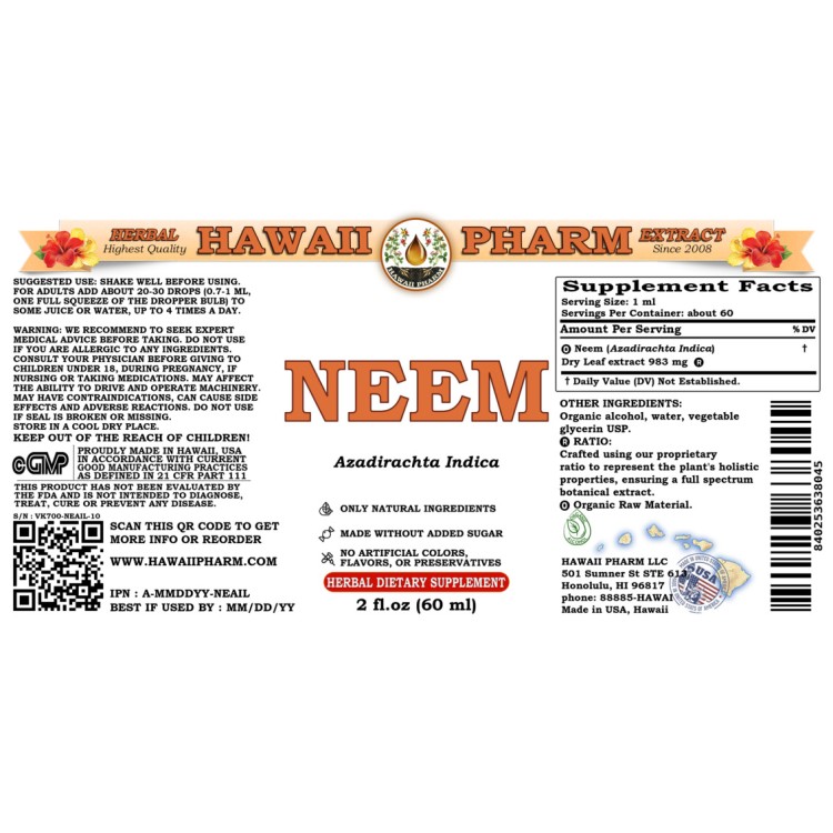 - Neem liquid extract contains ONLY natural ingredients! We strictly use Only Certified Organic or ethically sourced wild harvested raw material!