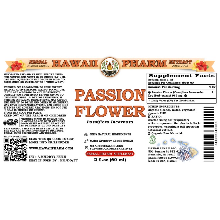 Availability : In StockPassion Flower Liquid Extract, Organic Passion Flower (Passiflora Incarnata) Dried Herb Tincture