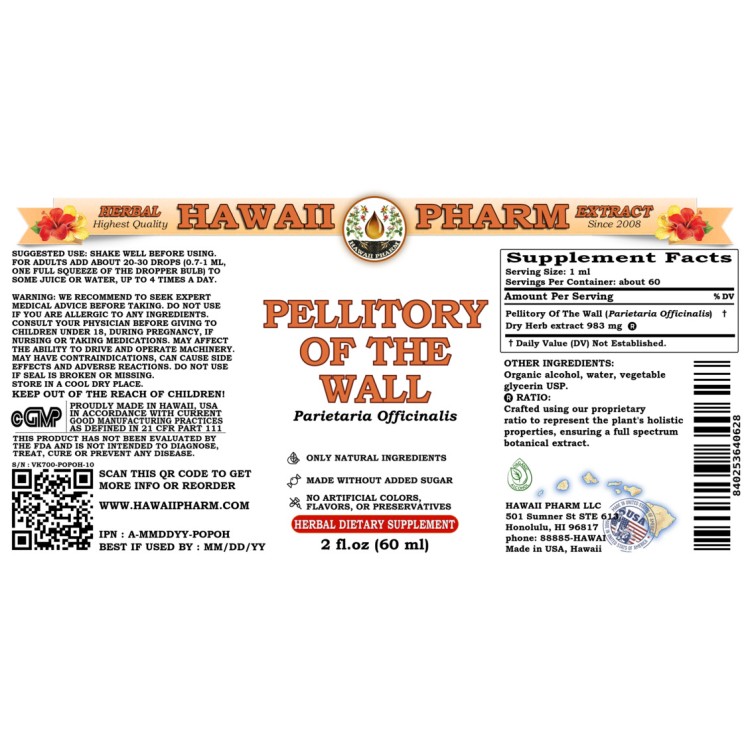 - Expertly extracted under strict quality standards and procedures from Pellitory Of The Wall dry Herb. We meticulously produce our extracts according to precise standards where each herb is extracted according to the distinct characteristic of each plant.