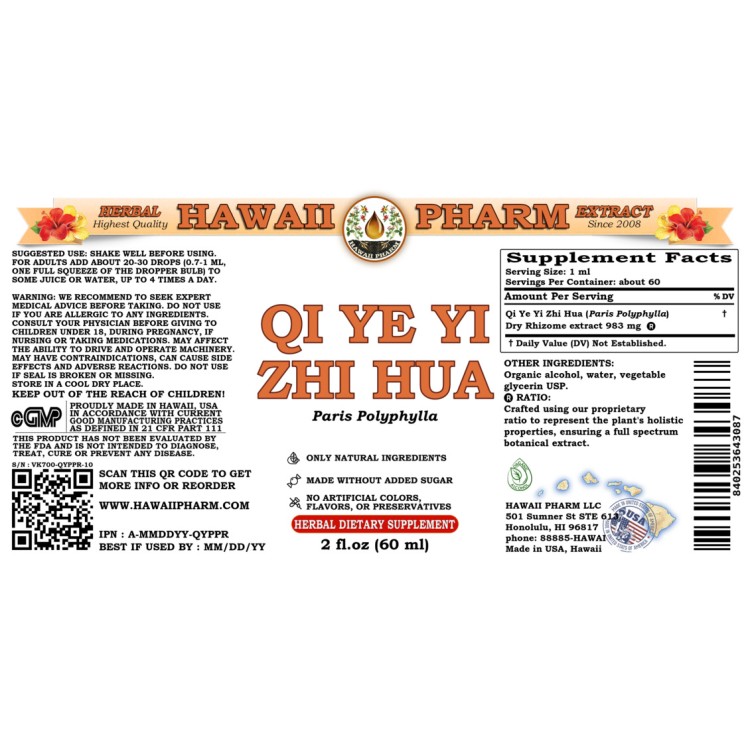 - Qi Ye Yi Zhi Hua (Zao Xiu, Chong Lou) tincture contains ONLY natural ingredients!