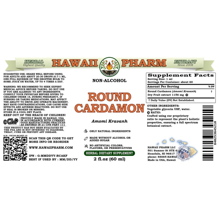 • We made this Round Cardamon liquid extract using ONLY natural ingredients! This extract does not contain Alcohol, GMO, gluten, artificial colors, heavy metals, preservatives, pesticides or fertilizers!