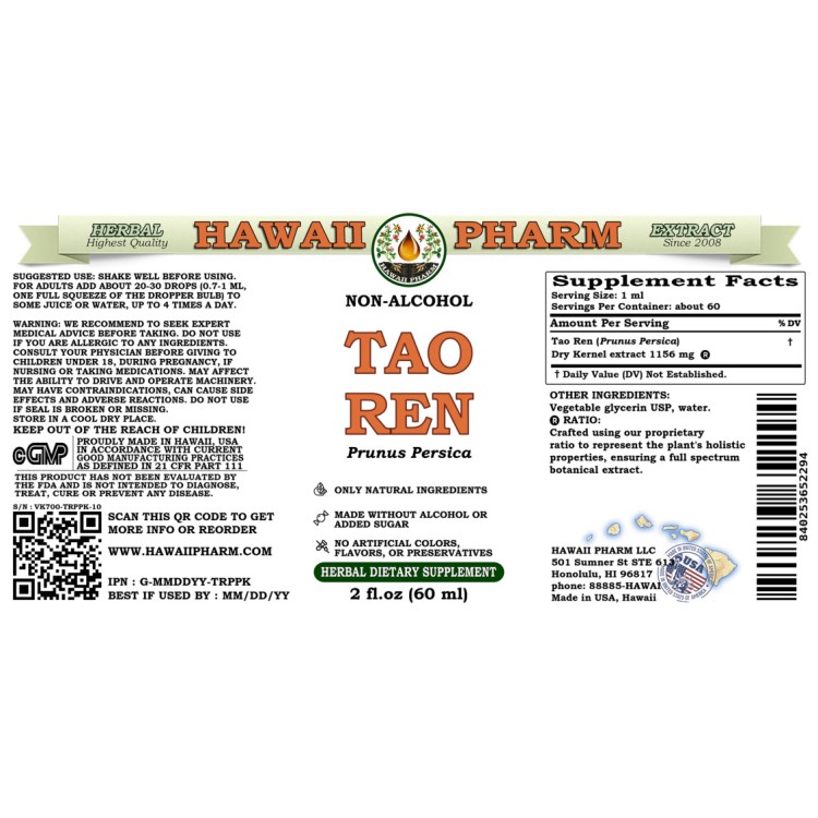 - Expertly extracted Tao Ren ALCOHOL-FREE liquid extract!