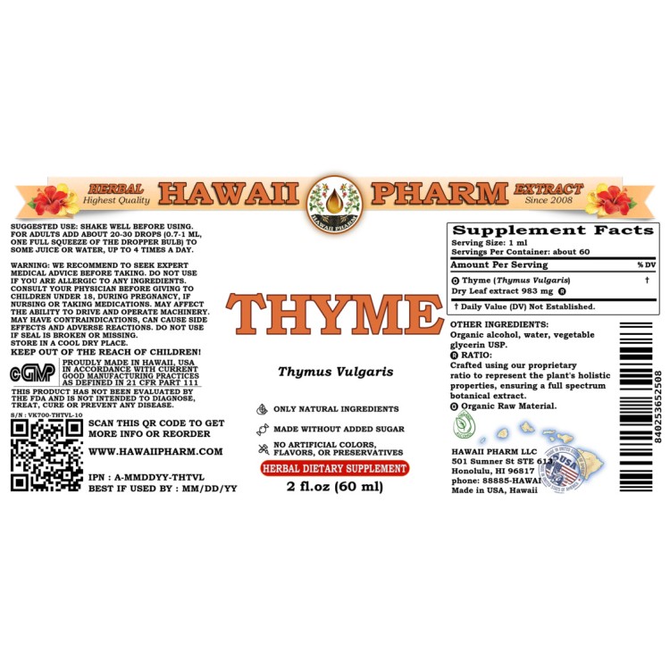 - Thyme liquid extract contains ONLY natural ingredients! We strictly use Only Certified Organic or ethically sourced wild harvested raw material!