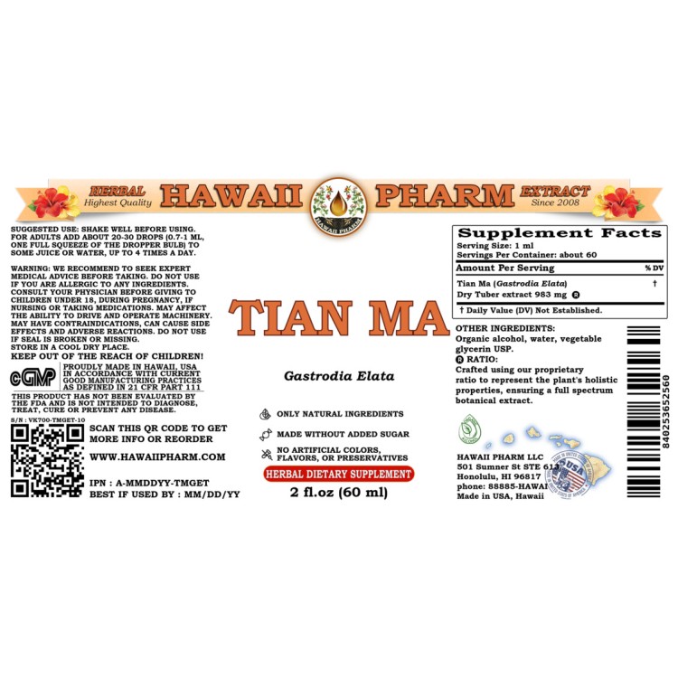 • Tian Ma liquid extract contains ONLY natural ingredients!