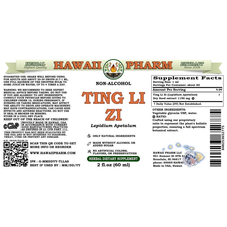 - Expertly extracted Ting Li Zi ALCOHOL-FREE liquid extract!