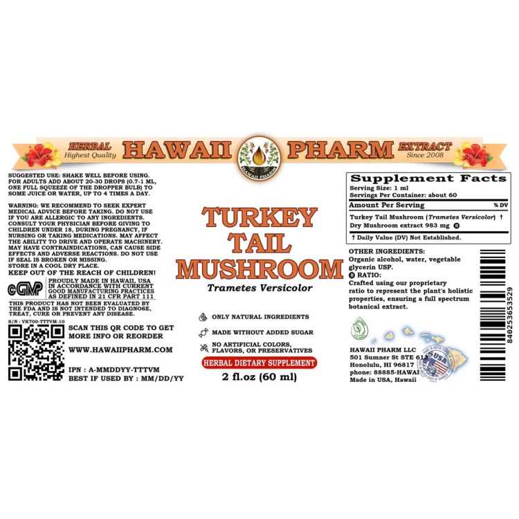 - Turkey Tail Mushroom liquid extract contains ONLY natural ingredients! We strictly use Only Certified Organic or ethically sourced wild harvested raw material!
