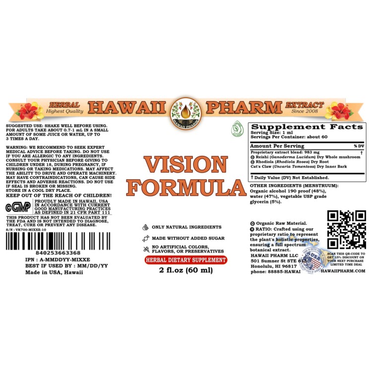 • High Quality Vision Formula liquid extract. We use classic conventional methods of extraction! We meticulously produce our extracts according to precise standards where each herb is extracted according to the distinct characteristic of each plant.