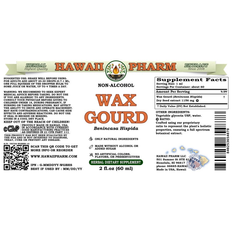 - We made this Wax Gourd liquid extract using ONLY natural ingredients! This extract does not contain Alcohol, GMO, gluten, artificial colors, heavy metals, preservatives, pesticides or fertilizers!