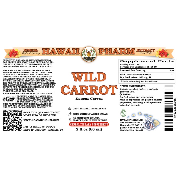 - Wild Carrot liquid extract contains ONLY natural ingredients! We strictly use Only Certified Organic or ethically sourced wild harvested raw material!