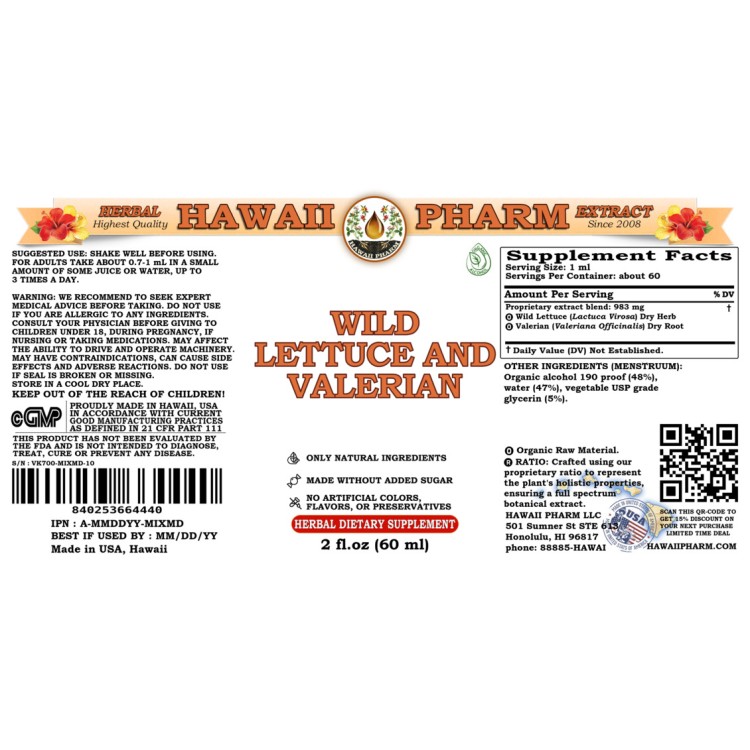 - Wild Lettuce And Valerian liquid extract contains ONLY natural ingredients! We strictly use Only Certified Organic or ethically sourced wild harvested raw material!